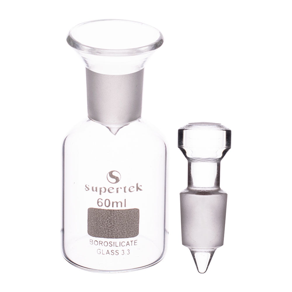 - Available with glass and PTFE stoppers.